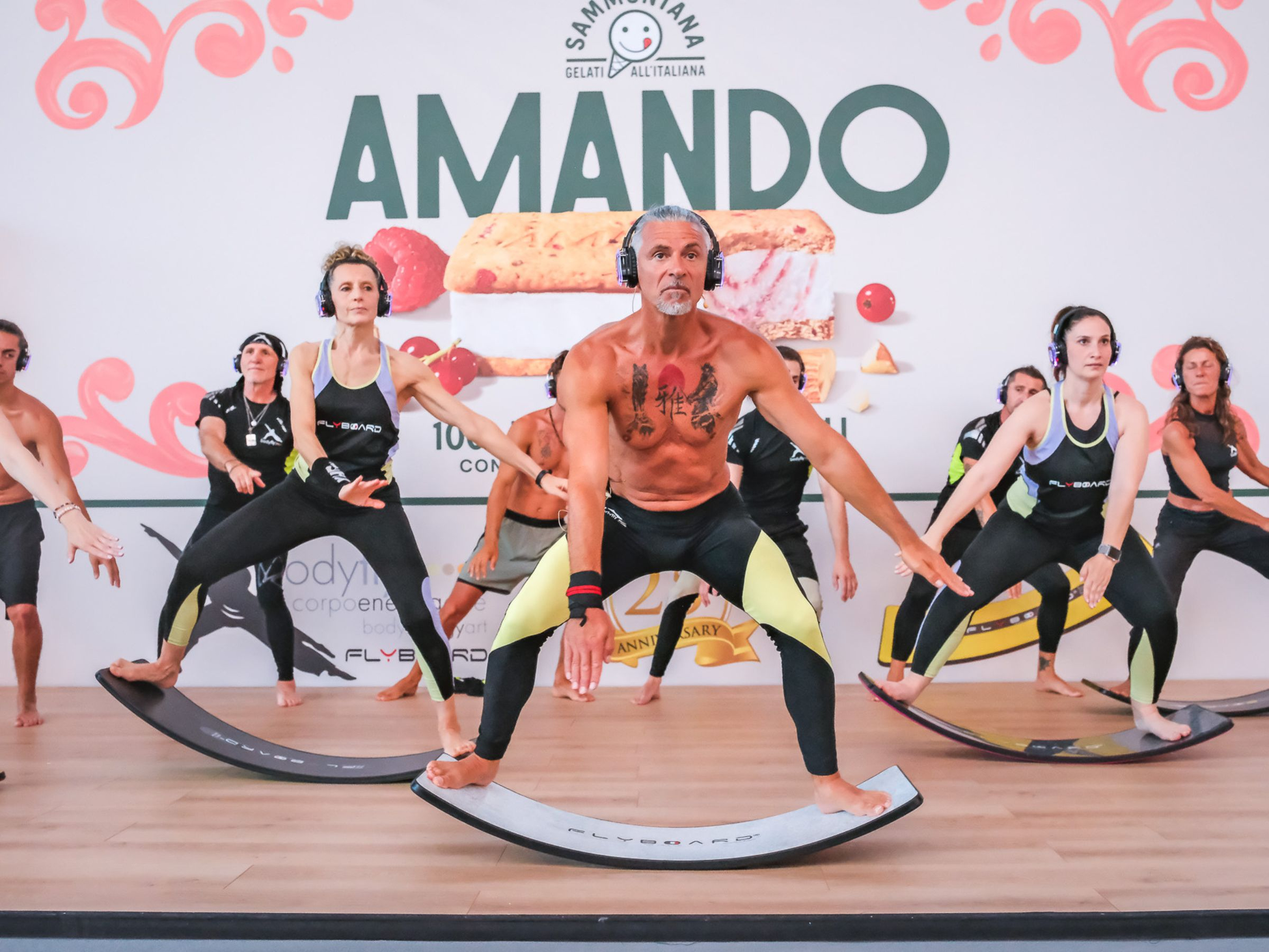 Oltre 54 lezioni gratuite condotte da un team internazionale di trainer certificati e diretti dal Master Coach Gennaro Setola, provenienti da Italia, Messico, Spagna, Russia, Lituania e Ungheria. La proposta si articola con lezioni della disciplina olistica BodyFly® e con il Flyboard® Balance Board che insieme a sessioni LAB — Longevity, Headstand e Postural — rappresentano il cuore pulsante del Programma, con prenotazione obbligatoria tramite QR Code dedicato.
